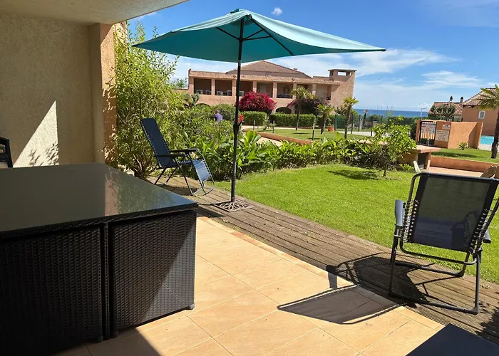 厨房设施包括微波炉,洗碗机和玻璃器具. 从公寓到Sud Corse机场只需55分钟的车程. 现场还有季节性的室外游泳池.